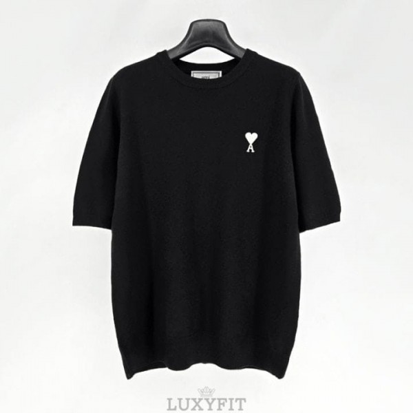 AM 아미 화이트로고 여성 니트반팔
