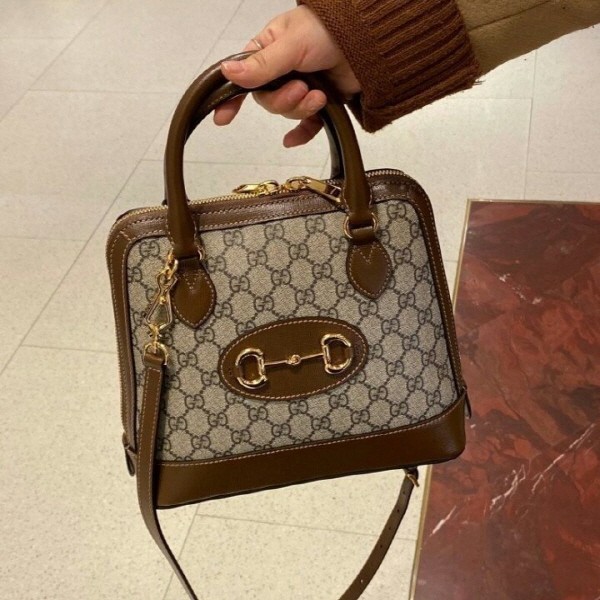 친환경 소재로 제작된 베이지/에보니 GG 수프림 캔버스와 브라운 레더 트리밍