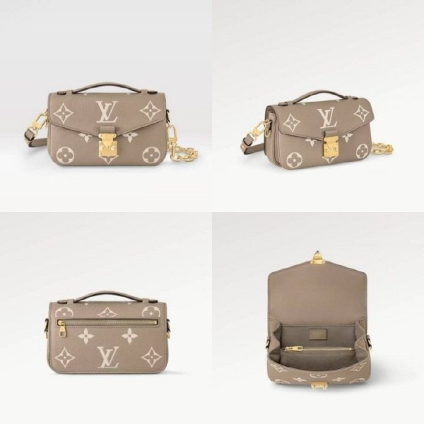 천연 카우하이드 가죽 소재의 트리밍과 시그니처 S락을 구성한 모노그램 캔버스 소재의 포쉐트 메티스 이스트 웨스트 백입니다. 세련된 짧은 숄더 백으로 연출할 수 있는 골드 톤 체인과 같은 새롭고 현대적인 디테일과 상징적인 하우스 스타일이 조화를 이루는 디자인으로 아이폰 13을 수납할 수 있는 넉넉한 크기와 세 개의 내부 수납공간, 내부 지퍼형 포켓 및 외부 지퍼형 포켓으로 제작되었습니다.