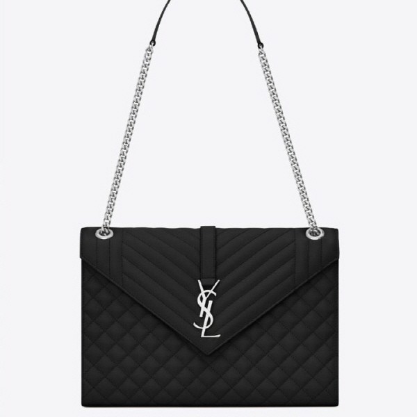 그랑 드 뿌드르 가죽 소재의 라지 ENVELOPPE 플랩 백, 헤링본 및 마름모 퀼팅 탑스티치 디테일.