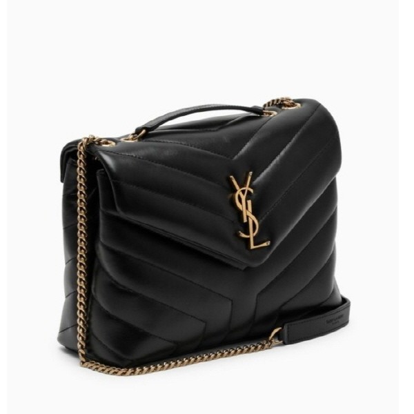 프론트 플랩이 달린 생 로랑 모노그램 백. 인터레이싱 메탈 YSL 이니셜 장식, 솔더백으로도 연출할 수 있는 가죽과 메탈 체인 스트랩