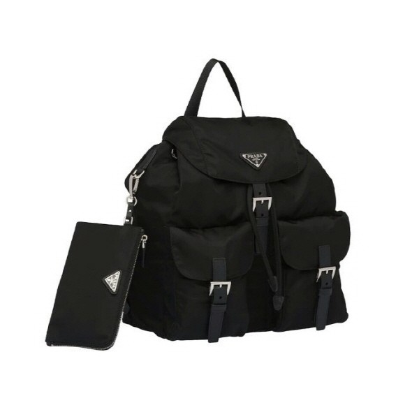 세련된 사피아노 가죽 트리밍 장식이 있는 나일론 백팩으로, 여러 재료를 조합해 모던한 매력과 변하지 않을 우아함을 표현했습니다. 메탈 트라이앵글 로고가 장식되어 있습니다.
