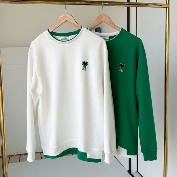 AM 아미 수입 그린 뉴하트 레이어드 맨투맨