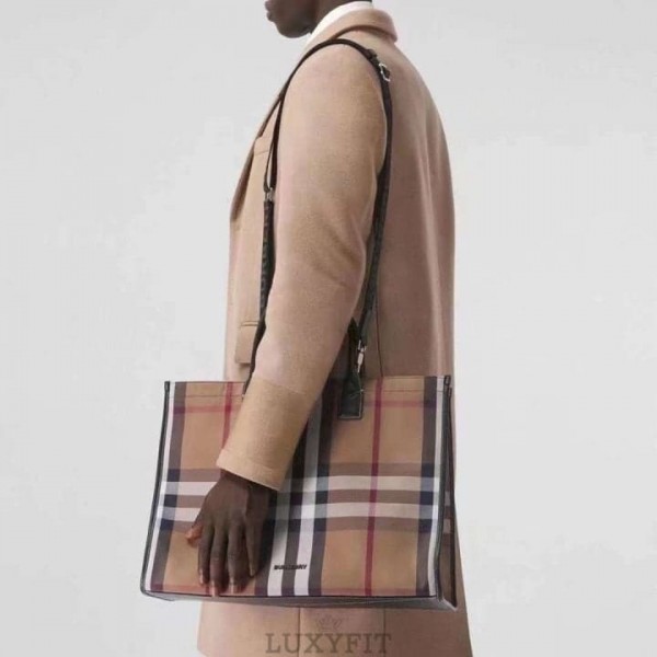 BB 버버리 체크 캔버스 토트백