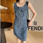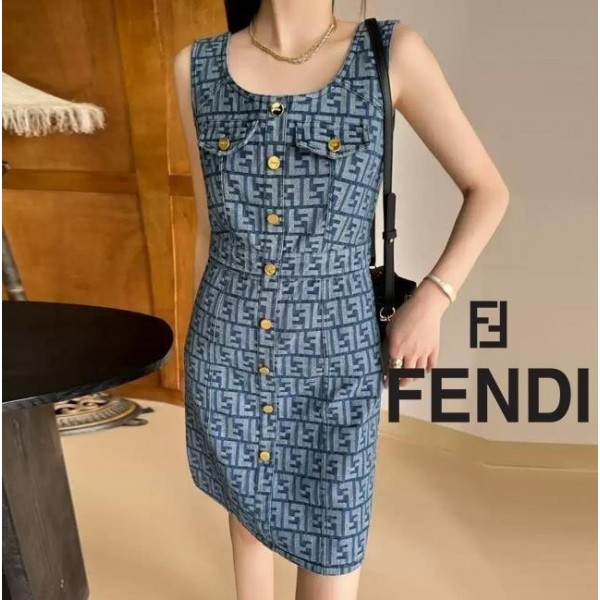 • FD 펜디 FF 패턴 포켓 데님 민소매 원피스