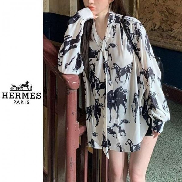 에르메스 홀스 패턴 블라우스
