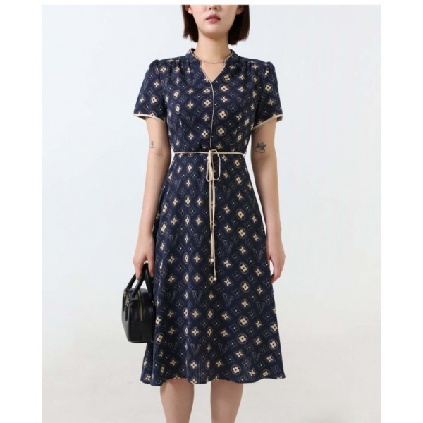 • LV 루이비통 수입 V넥 모노그램 패턴 원피스  (최고급)