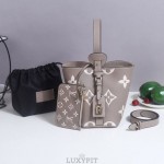 이 제품은 세련된 버킷 백 디자인으로, 바이 컬러 모노그램 앙프렝뜨 가죽 소재를 사용하여 고급스러운 느낌을 줍니다.