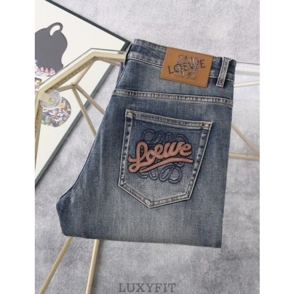 LW 로에베 아나그램 자수 패치 워싱스판 데님진
