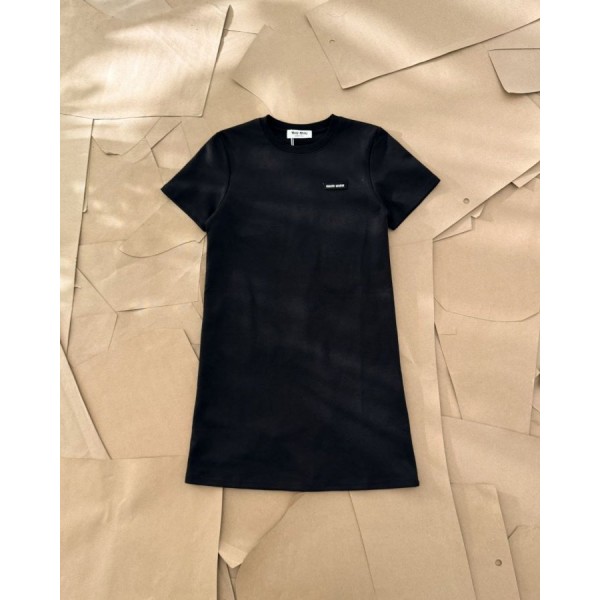 • MU 미우미우 25 로고 패치 반팔 원피스 - 수입