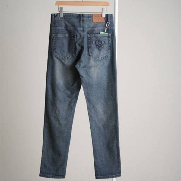 PD 프라다 레더패치 포켓 엠보로고 데님 팬츠