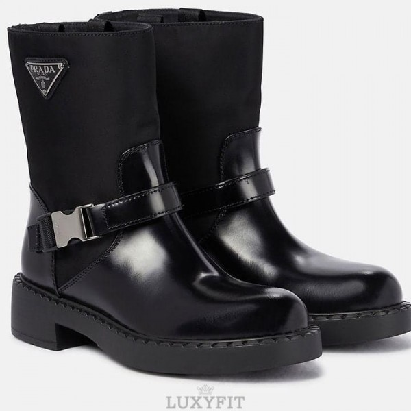 PD 프라다 브러쉬드 레더 리나일론 버클 앵글 부츠