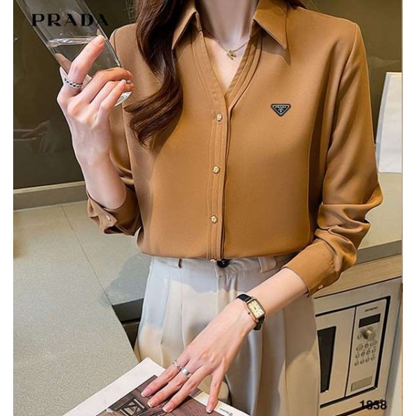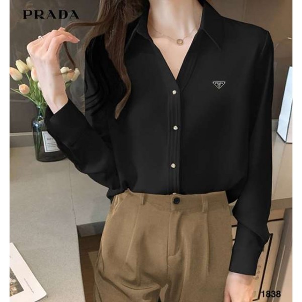 프라다 브이 카라 블라우스