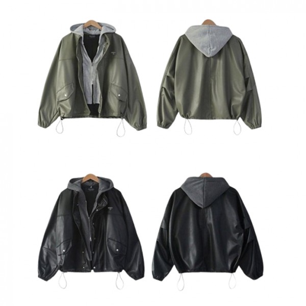 • PD 프라다 후드 레이어드 레더 야상