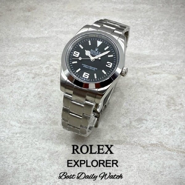 익스플로러는 히말라야 등반의 경험을 바탕으로 독특한 시침과 분침을 포함하여 익스플로러를 대표하는 가독성 높은 블랙다이얼과 3시 6시 9시 방향의 대형 아라비아 숫자를 선보여 어느곳에서도 정확히 시간을 읽을수 있도록 한 디자인입니다