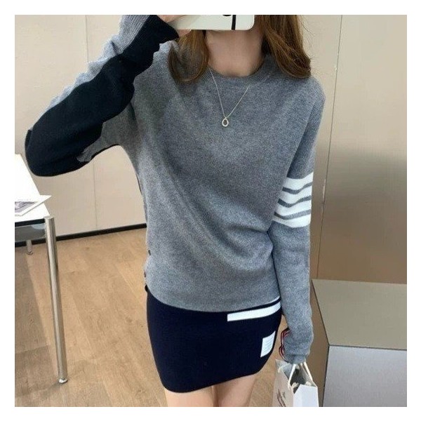 //TB 톰브라운 T 그레이 앤 네이비 라운드 니트 (8371)  > 상의 | 럭셔리한 당신만을 위한 쇼핑몰 ★럭시핏★